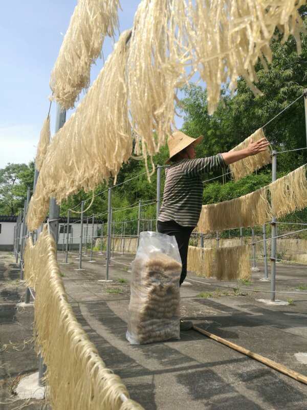 它采用百分之百的红薯原料,采集深层地下泉水制作,完全按照传工艺生产,十分注重产品质量,不含任何添加剂,采用番薯经洗净水磨,去薯渣和杂质,取其淀粉调水,一层一层炊透,至冷却转硬后,采用独特传统生产工艺精制而成的番薯粉丝,具有色泽晶莹、口感韧滑、耐煮、耐炒、味美质佳、营养丰富等特点。